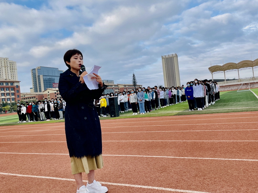 迎着第一缕晨光,升旗仪式正式开始。国旗班护卫队队员护送着鲜艳的五星红旗,他们目光如炬,队列整齐,步履铿锵,在庄严的国歌声中,五星红旗冉冉升起,在场的每一名师生深怀对祖国无限的热爱和崇高的敬意行注目礼、高声唱响国歌。今天也是我国第24届“全国推广普通话宣传周”的第一天,医学技术学院2020级口腔工艺技术五年制3班学生樊奇英作了《推广普通话,从我们做起》的主题演讲,她首先向新同学的到来表示欢迎和问候,并从使用方言交流带来的不便和书写错别字带来的问题的角度,阐述了说普通话和写规范字的重要性,号召全体同学携起手来,互相监督,互相鼓励,让清脆悦耳的普通话响彻校园的每一个角落。升旗仪式最后,校团委书记衡冰发表主题讲话,她分别介绍了推广普通话宣传周的历史背景、活动要求和近期安排,着重强调了使用普通话和规范字的重要意义,并传授了数条学好普通话的要领,并要求全体同学要扬民族文化,树民族精神,齐心协力说好普通话,写好规范字。