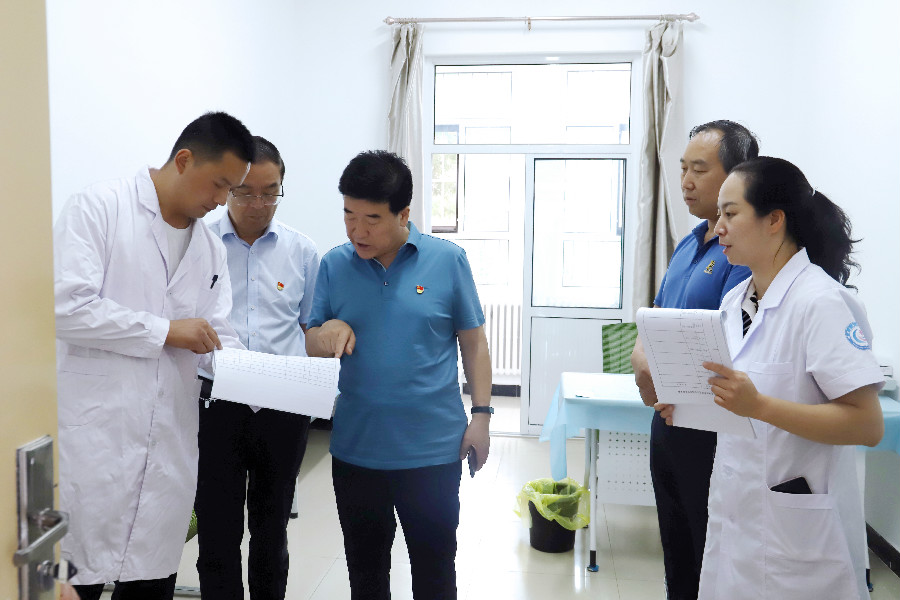 为深入推进党史学习教育取得办实事、开新局的成效,7月5日,党委书记姜德民、副书记刘生肸带队到保卫处、心理健康教育中心、后勤处、附属医院学校医疗点、马克思主义学院党支部进行调研。党办、组织部、宣传部、团委、学工部负责人参加。