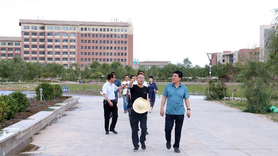 姜德民、刘生肸一行实地察看消防安全监控室、人工湖步行道、附属医院学校医疗点、学生食堂、学生公寓晾衣架布设点,详细了解“为党旗添光彩、为师生办实事”实践活动进展情况,在心理健康教育中心、马克思主义学院调研时,与负责人和教师代表进行了座谈,听取了工作汇报。