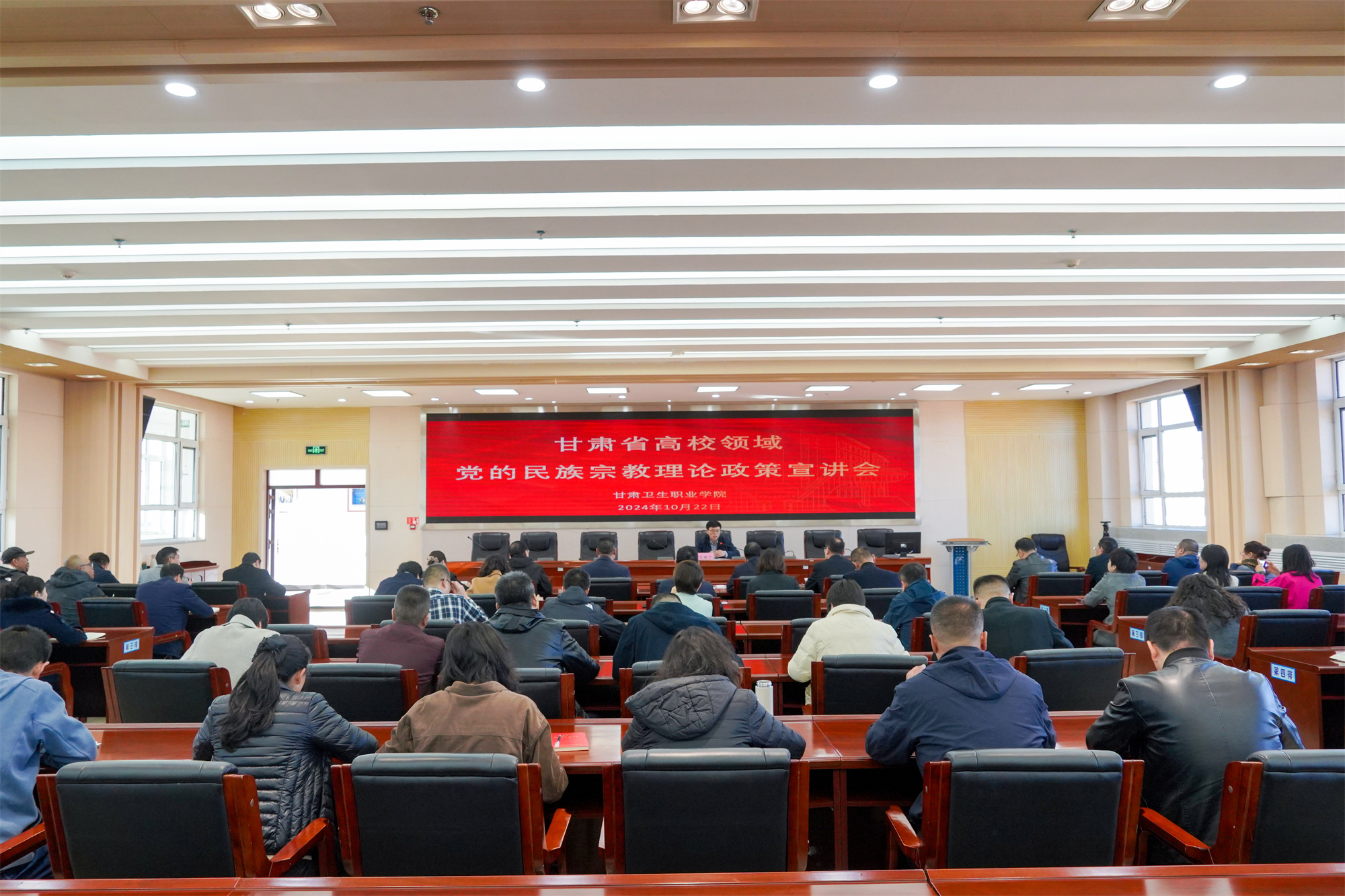 10月22日上午,学校在行政楼8楼报告厅举行甘肃省高校领域党的民族宗教理论政策宣讲会。甘肃省教育厅思想政治处处长焦鹏宁到会宣讲,学校党委书记包磊主持会议。