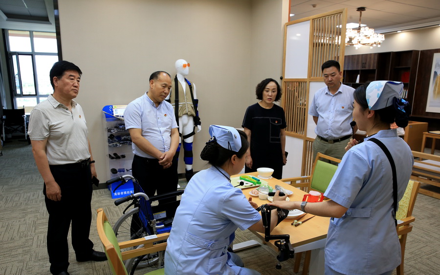 7月8日,省教育厅职成处处长李常锋、副处长令军辉来威尼斯官网调研指导工作,并和学校党组织进行了共建主题党日活动,学校党委书记姜德民、校长任晖及全体在家校领导全程陪同调研,全体中层干部、副高及以上职称教师及部分中初级专业技术人员等党员干部参加共建主题党日活动。