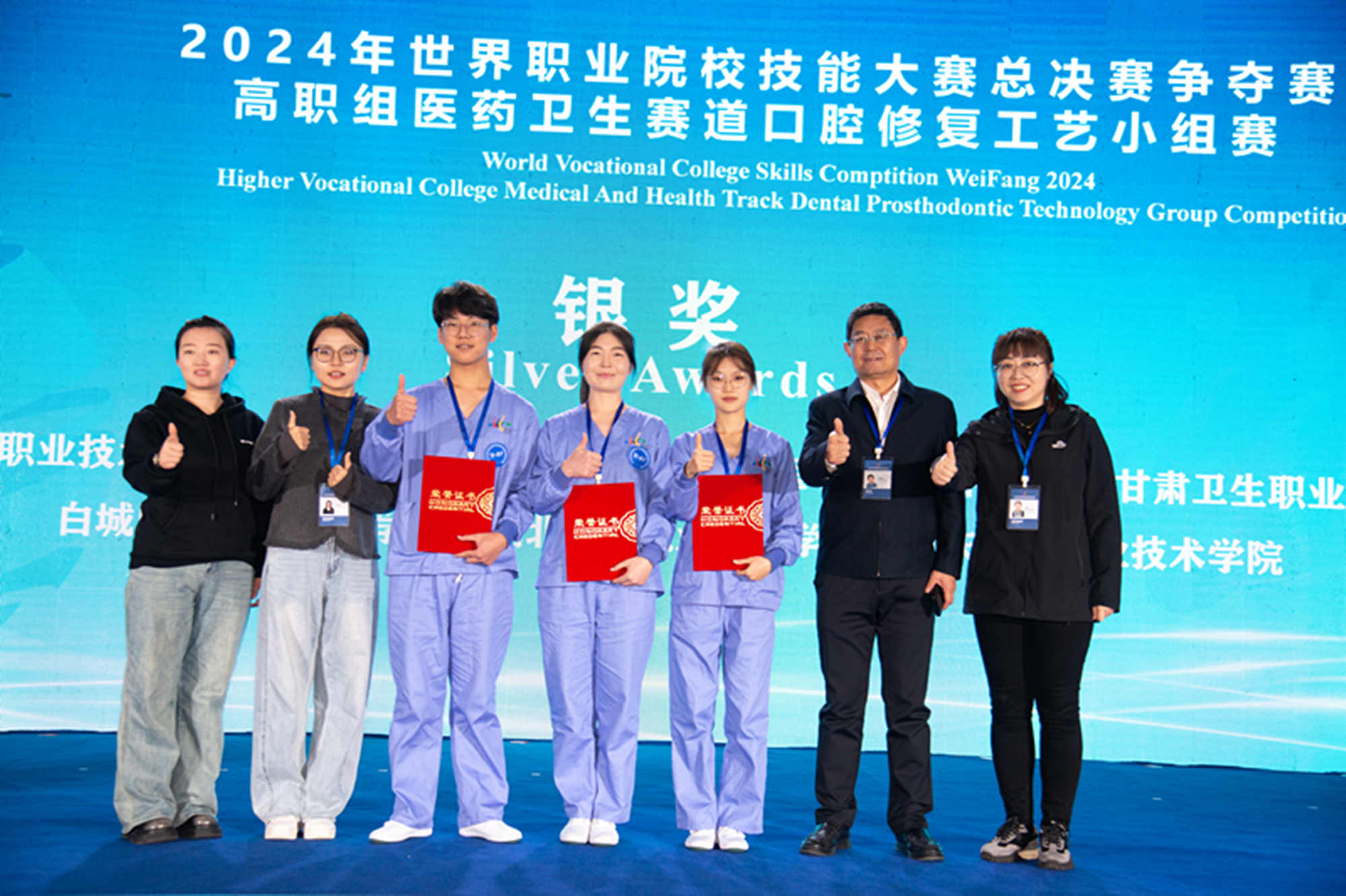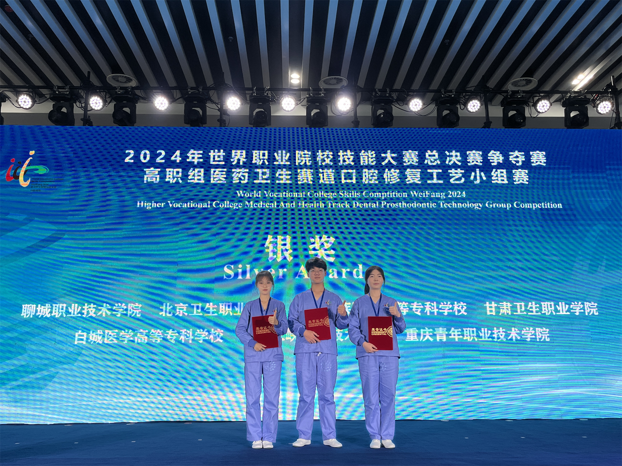 10月29日至30日,2024年世界职业院校技能大赛总决赛医药卫生赛道三(口腔修复工艺赛项)争夺赛在山东潍坊高铁北站综合体成功举办。来自全国各地47支优秀参赛队,共171名参赛选手同台竞技。威尼斯官网参赛选手郭瑩春、刘芳银、尚天路以平行组第3名总分620的成绩荣获银奖。