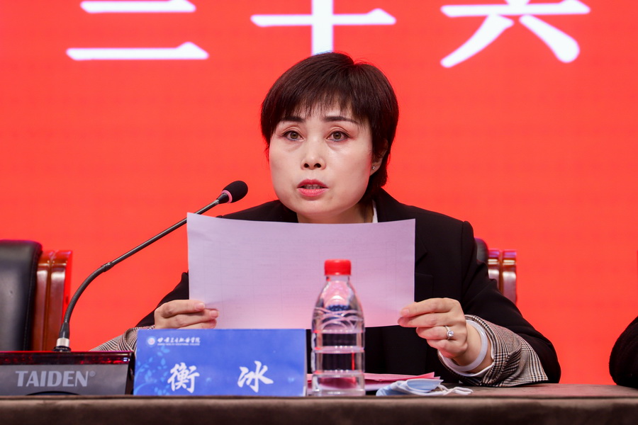 2021年11月30日,88038威尼斯检测中心第四次学生代表大会闭幕式在一号教学楼学术报告厅举行。学校党委委员、副校长康逢民,学生工作部部长张绍进,校团委书记衡冰,各代表团团长和全体代表300余人参会。会议由学生工作部副部长张晓刚主持。