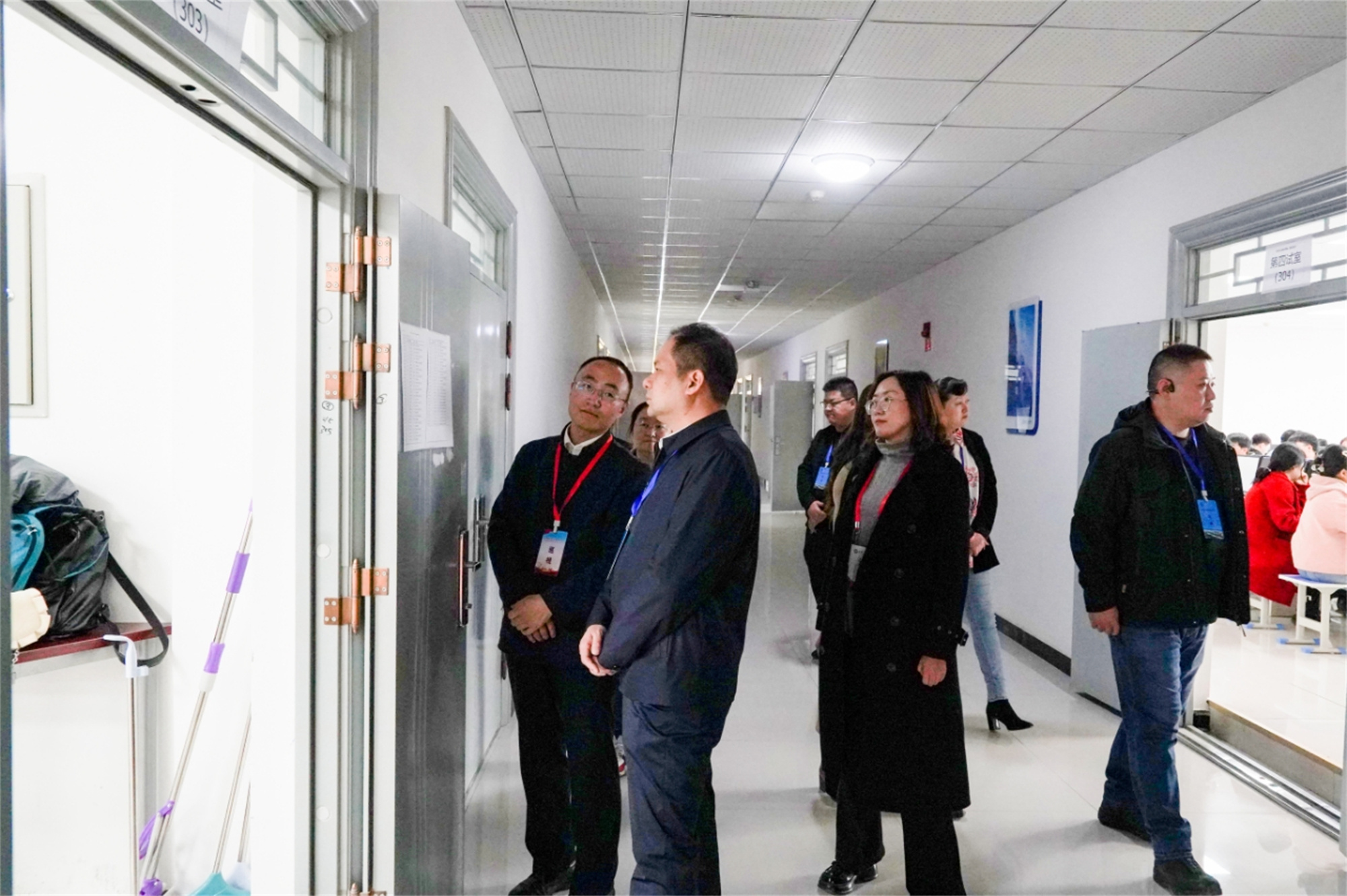 11月8日下午,学校组织召开了考前考务培训工作会议,对监考老师和考务工作人员强调了考风考纪,明确了执考要求。考试过程中,考务人员分工明确,监考人员严格执考,考场秩序井然有序。11月9日下午,在副校长杨频陪同下,省卫健委医政处处长尹江疆、人才交流中心党支部书记陆保意一行对考点工作进行了实地督导,在督导过程中对学校考点的考务措施落实、考风考纪情况及相关考试保障等工作给予了充分肯定。