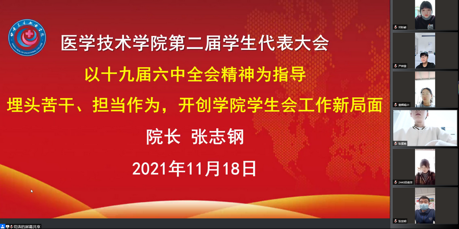 根据共青团甘肃省委和学校党委的安排,医学技术学院于11月18日在线上召开了第二届学生代表大会。学院领导、全体辅导员、学生代表、学生会委员候选人共120余人参加大会。学校团委书记衡冰参会进行指导。