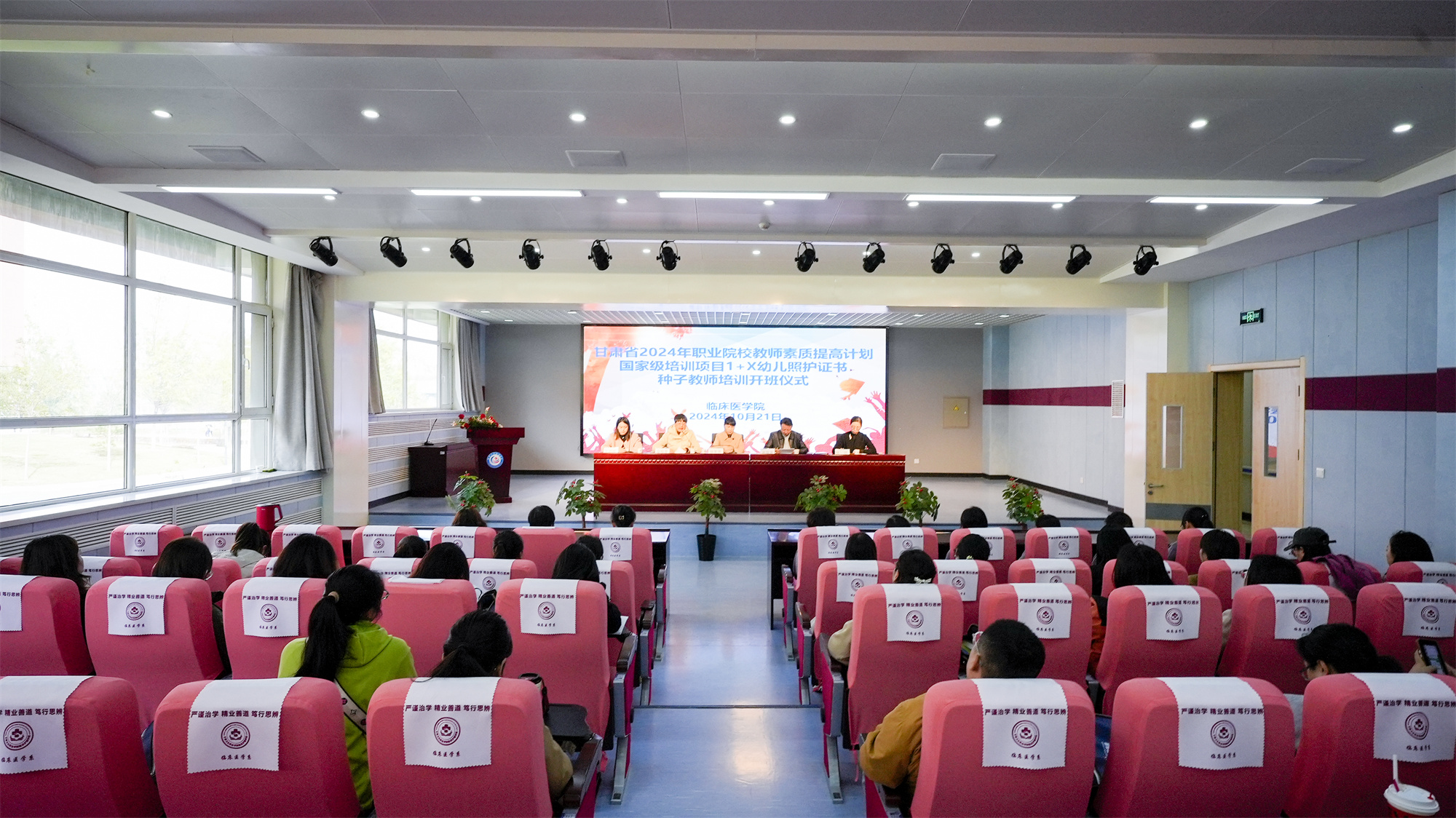 10月21日下午,临床医学院在临床楼一楼多功能厅举办“甘肃省 2024 年职业院校教师素质提高计划国家级培训项目——1+X幼儿照护证书种子教师培训班”开班典礼。学校党委委员、副校长张军荣,临床医学院党总支书记谢振荣、院长寇桂香、副书记张妤、副院长徐银娟,任课教师及培训班学员参加开班典礼。开班典礼由谢振荣主持。